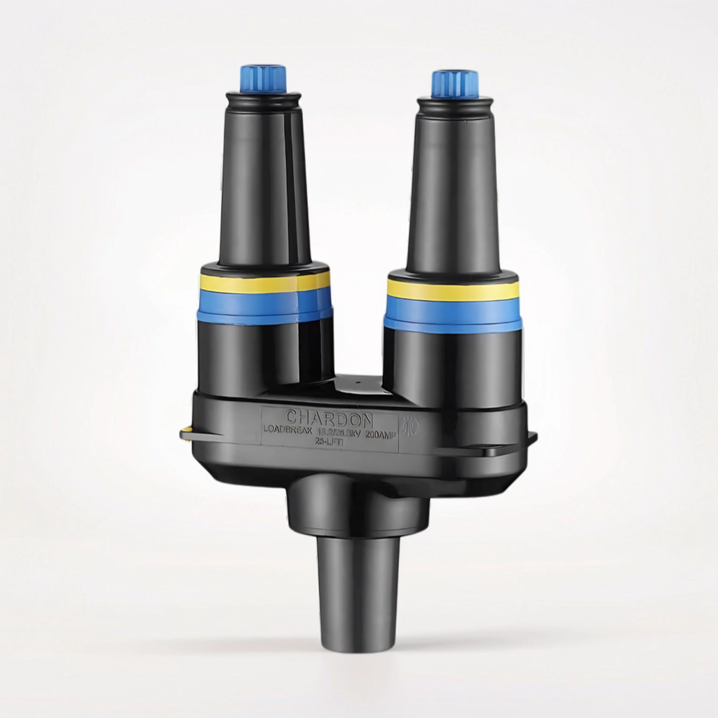 The Chardon Loadbreak Feed Thru Insert threads onto a standard 200A bushing well and provides dual loadbreak bushing interfaces. It can convert radial-feed transformers to feedthru transformers and add in-line arrester protection if needed. The torque limit ratchet feature prevents the bushing well stud from breaking during installation. The ratchet feature allows users to rotate the feed thru insert for 360° to orient the feedthru insert in the desired position.
